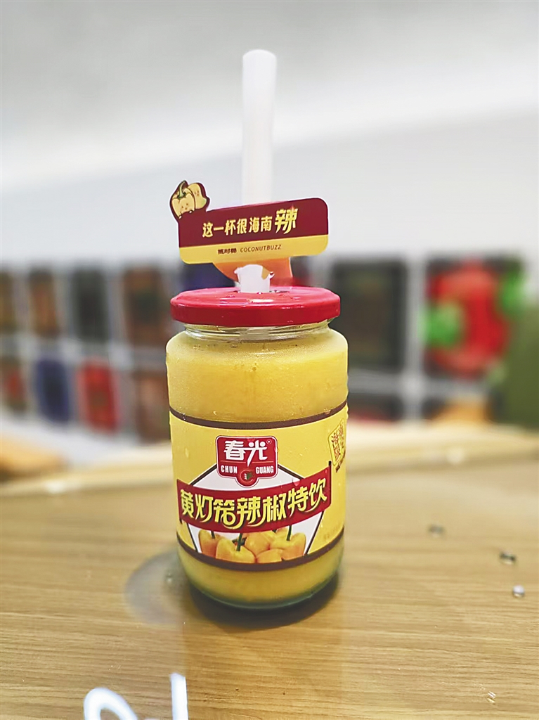 “这款特饮的热度完全超乎预期。”春光茶饮事业部总监黄梁是黄灯笼辣椒特饮的研发者。他透露,这款产品的灵感来源于火遍街头的芒果辣椒盐。在海南,辣味和水果的复合味道早被人们熟识和喜爱,将这样的搭配创新性引入茶饮研发中,是海南风味的另一种呈现。夏日漫长,琼岛人就地取材,早早掌握了“果蔬+饮品”这一搭配,众多海南特饮成为人们消夏解暑的独家“蜜”籍。