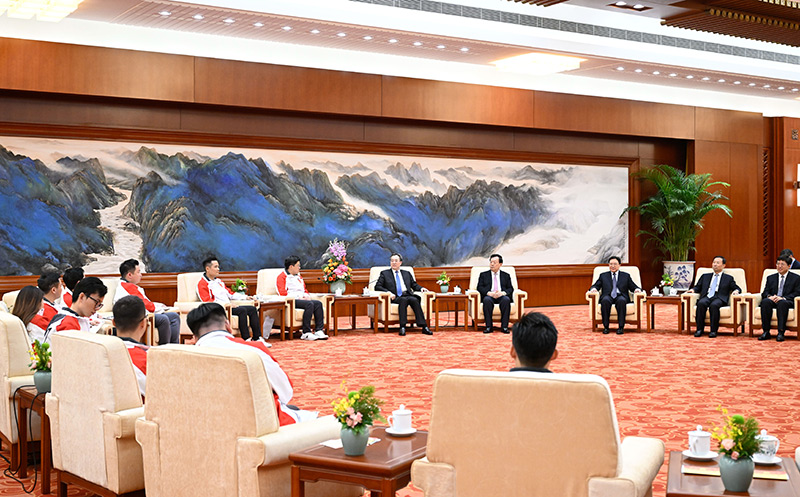 新华社北京11月22日电 中共中央政治局常委、国务院副总理丁薛祥22日下午在人民大会堂会见“港澳青年看祖国”各界港澳青年代表交流团,同他们合影留念并座谈交流。