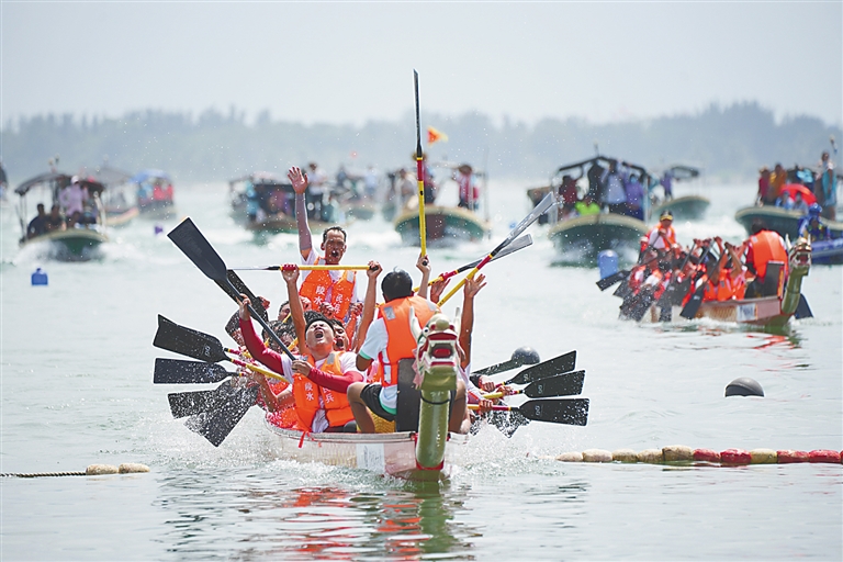 琼岛各地端午的节日氛围在一场场龙舟竞逐中被“引爆”。